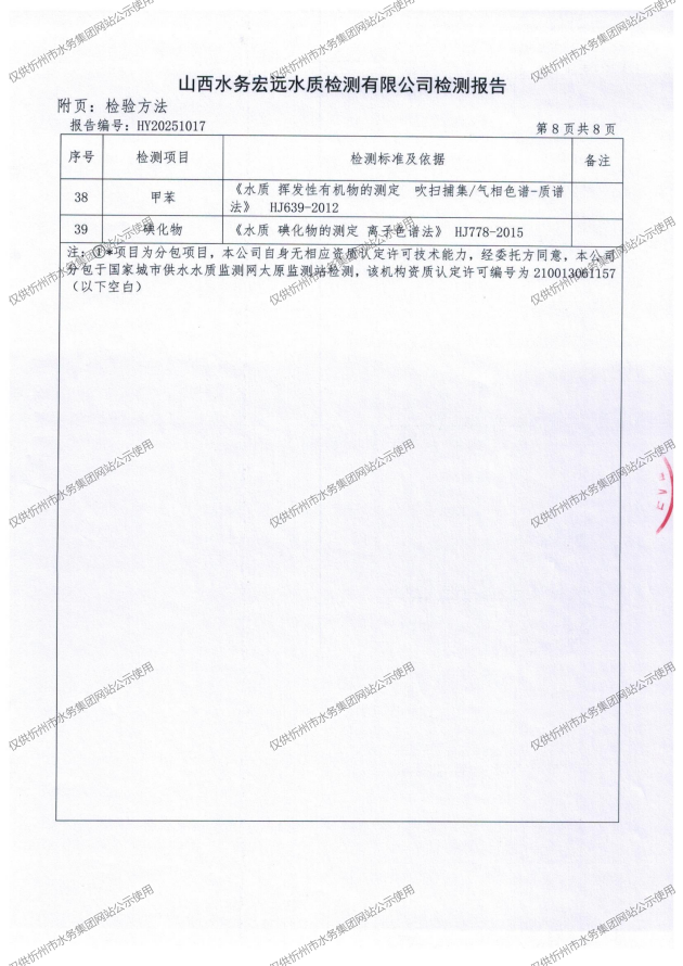 忻州城區(qū)公共供水水源水、出廠水、管網(wǎng)水、管網(wǎng)末梢水2025年9月份水質(zhì)信息公示