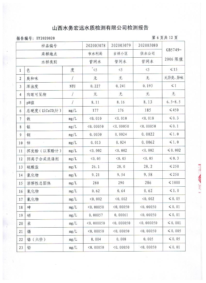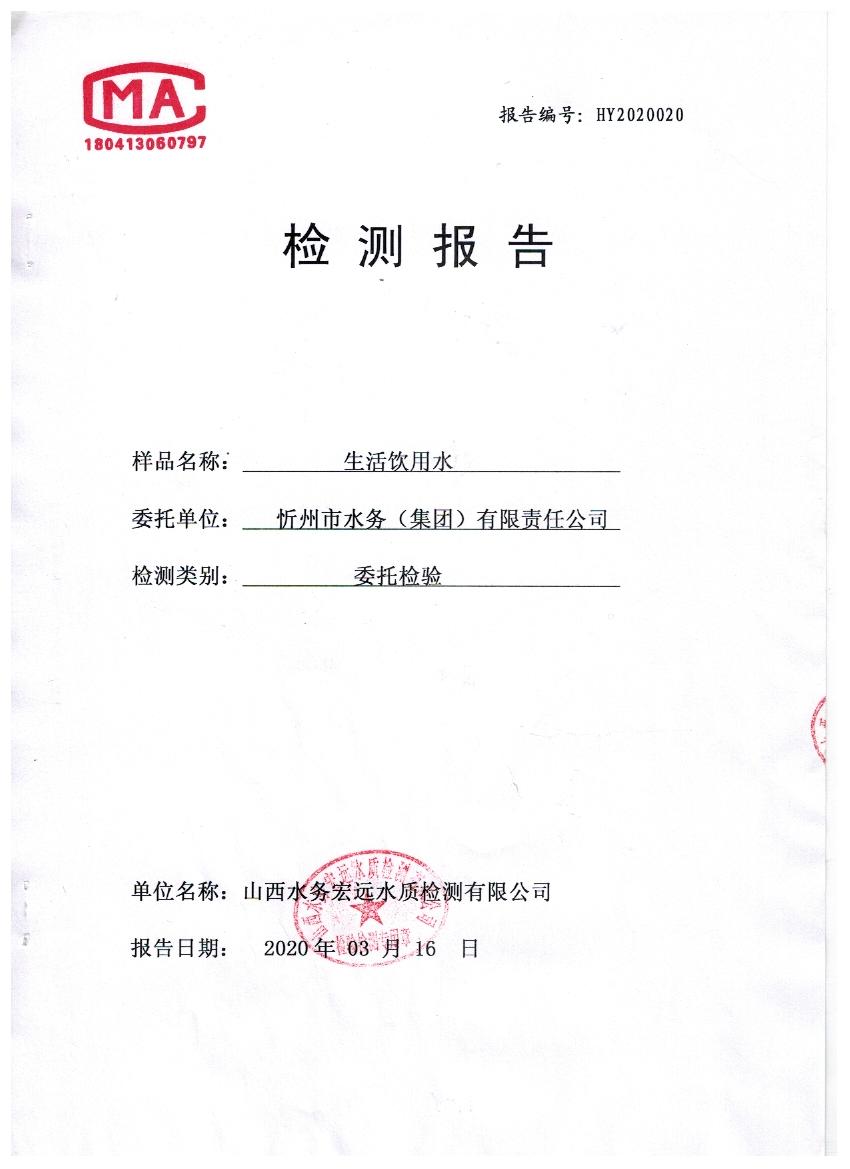 忻州城區(qū)公共供水水源水、出廠水、管網(wǎng)水、管網(wǎng)末梢水2020年3月份水質信息公示
