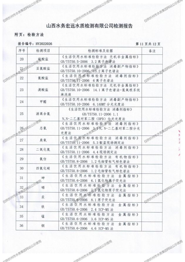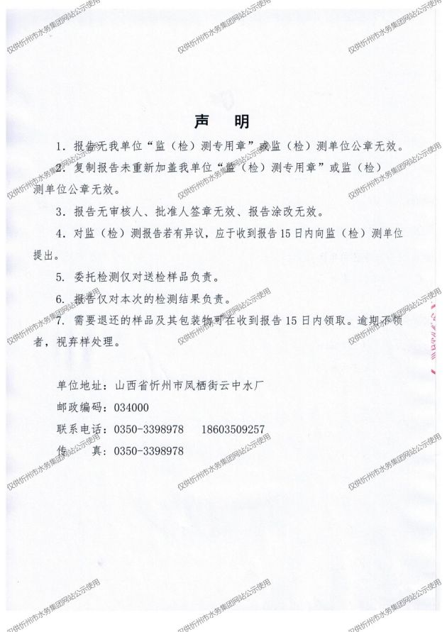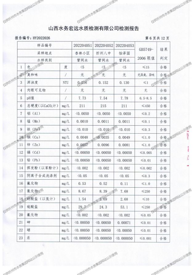忻州城區(qū)公共供水水源水、出廠水、管網(wǎng)水、管網(wǎng)末梢水2022年4月份水質(zhì)信息公示